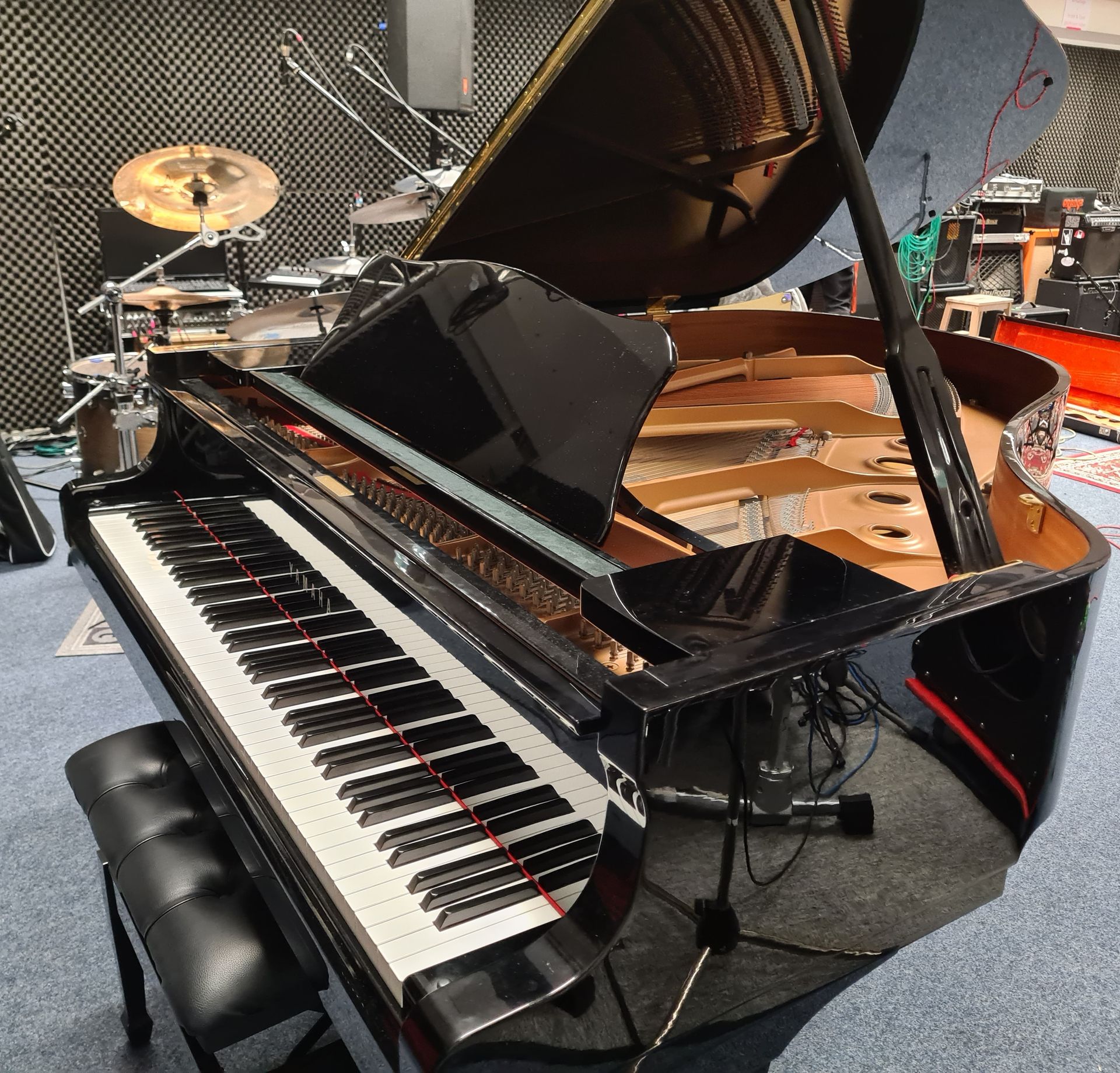 Ihr könnt eure eigenen Amps nutzen oder das vorhandene Equipment verwenden (Verstärker, Keyboards, Klavier, Drums, etc.)