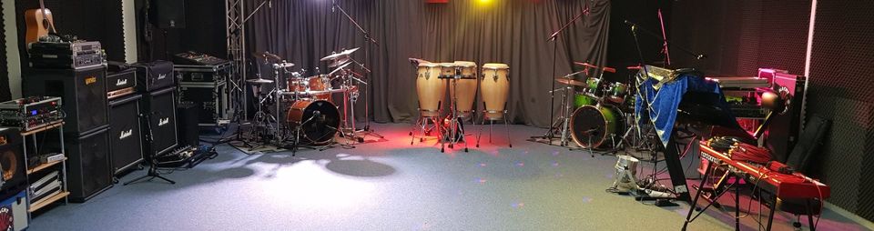 Aktuell haben wir noch zwei Plätze im Proberaum / Studio frei. Wir stellen euch einen 120 qm Proberaum zur Verfügung dessen Ausstattung keine Wünsche mehr offen lässt. Äußerst sauber, sehr hell (Dachgeschoss), klimatisiert, eigene (saubere!) Toiletten, Getränke, professionelle Kaffee-Maschinen, Internet Zugang, Fahrstuhl und Ton-Studio Niveau. Der Raum ist mit einer großen Yamaha PA ausgestattet. Mikrofone für jeden Bedarf sind vorhanden (Funk-Strecken) und werden mit professionellem InEar Monitoring unterstützt.