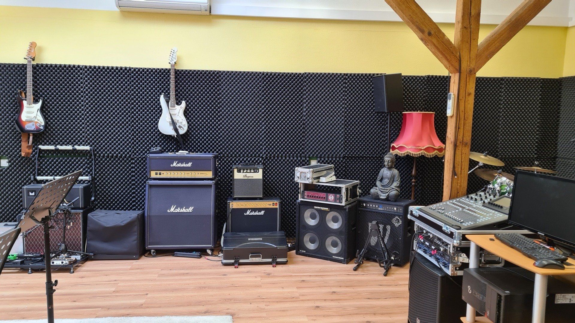 Wir stellen 80qm Proberaum mit Studio-Anschluss zur Verfügung. Die Ausstattung lässt keine Wünsche mehr übrig.